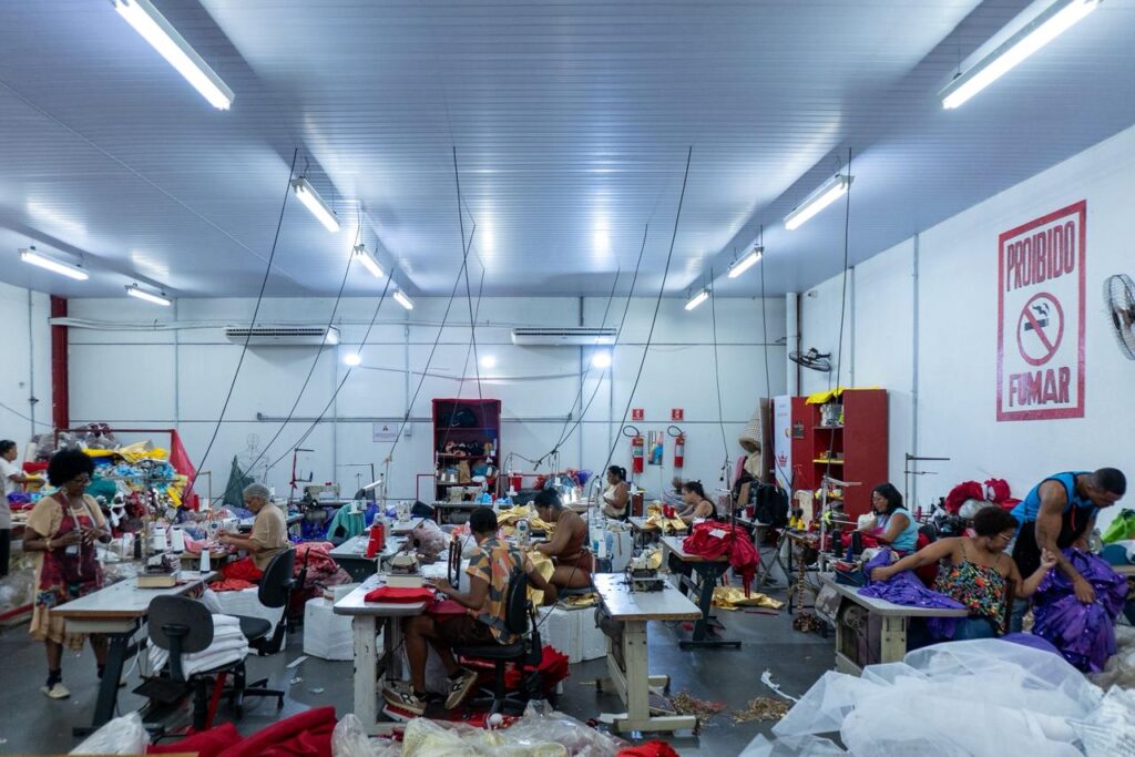 Denise Correia, costureira da Viradouro desde 2006, endossa as palavras de Alessandra e diz que, com a novidade, a produtividade até aumentou. “A gente vem trabalhar até mais feliz!”, comemora ela.